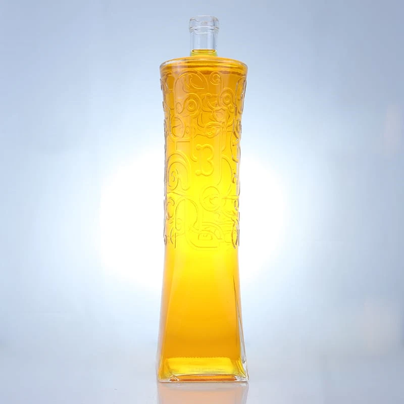 020 - 1000ml Unique Shaped Embossed Logo Vodka Glass Bottles
