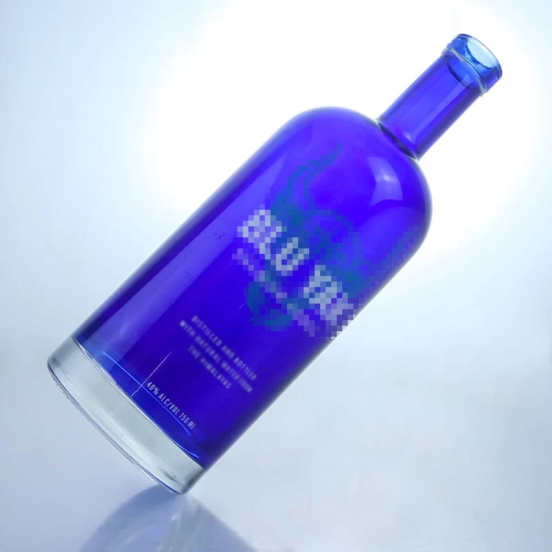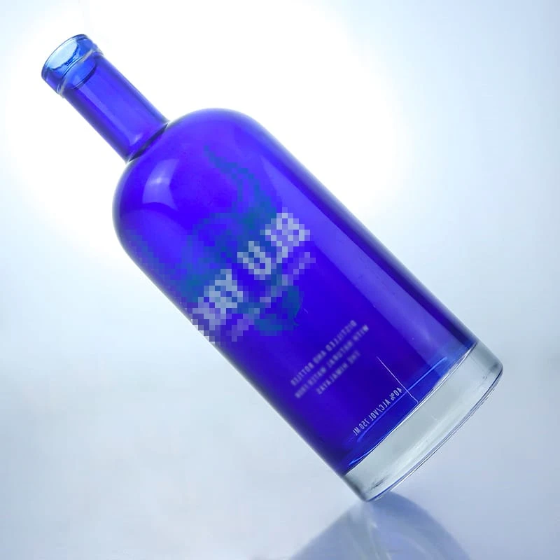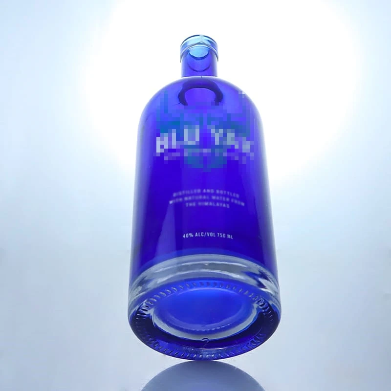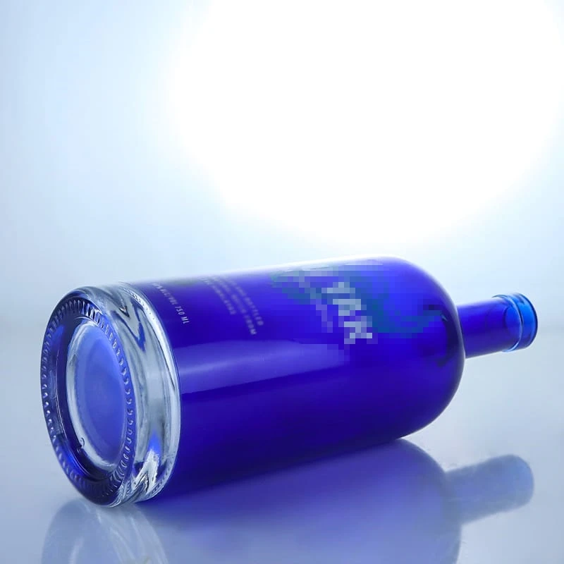 087-750ml spray blue clear bottom vodka bottle with cork cap