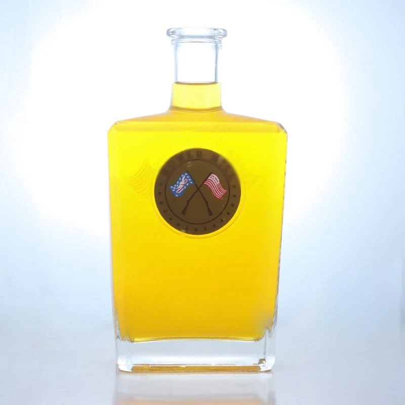 123- 750ml Flat square bottle vodka glass bottle stick metal label