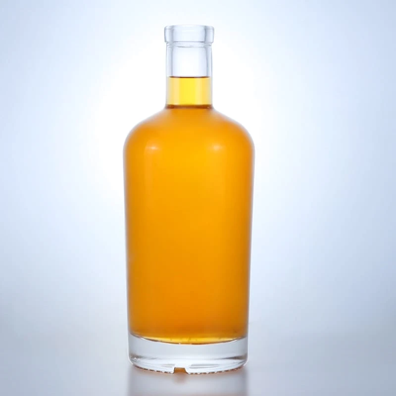 389-750ml factory customized round shape vodka glass bottle with cork