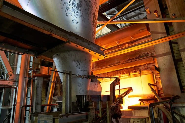From there it is carefully cooled to a uniform temperature and viscosity prior to reaching the feeder. Using the pull of gravity, the hot glass flows through the orifice at the bottom of the feeder. Glass flow is controlled by the height of a ceramic tube in the feeder; a raised tube creates a heavy flow while a lowered tube results in a reduced flow. The glass flow undergoes a “mixing action” created by the rotation of the ceramic tube. This helps to make the temperature consistent while the downward motion of the plunger accelerates the glass flow.