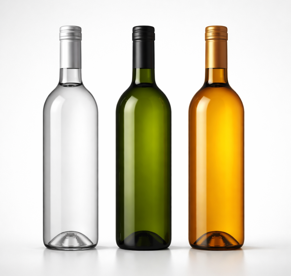 • Flint (transparent glass): Minimal UV protection; ideal for fresh white wines and Rosé.